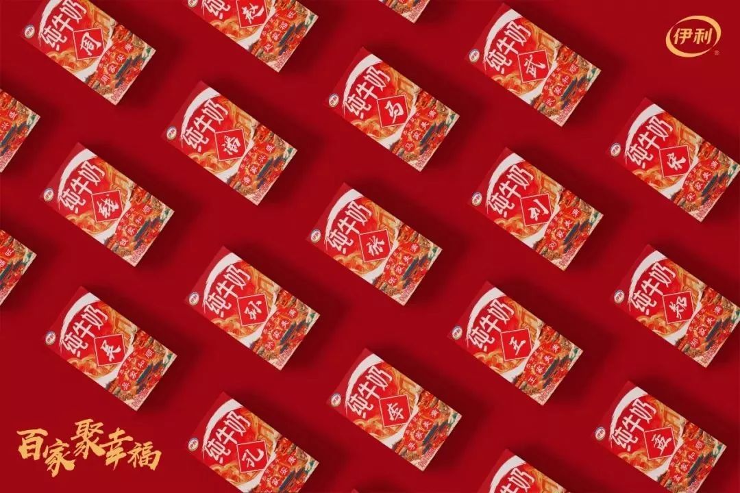 春節剛剛過去 各大品牌的限定款之戰 也告一段落了 春節期間,伊利牛奶玩新花樣了 出了一款伊利純牛奶百家姓限定包裝 伊利純牛奶將“百家姓”設計成國風元素 印在新年限定包裝盒上 每個盒子上面都有一個姓氏 和一句祝福
