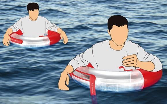 如遇海難,在茫茫大海中漂泊最痛苦的不過于對救援與生存的絕望。這款救生圈被分成了至少上下兩層,并有一段是透明的,人們可以利用陽光來對灌入救生圈內的部分海水進行蒸餾,并將淡化后的水導入到底層冷凝,再通過吸管飲用。當暫時無人營救時,還能勉強活下去。