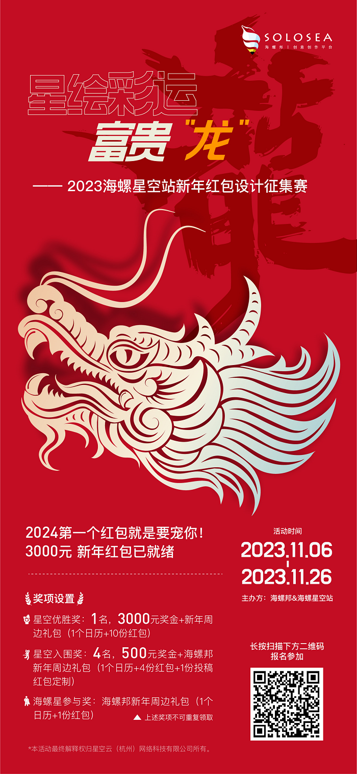 今年,我們期待更多設計師們的加入。無論你是夢想成為設計界的明日之星,還是已經閃耀著創意光芒的設計達人,這里都是你展現才華的舞臺!快來報名參加我們的紅包設計征集賽,讓你的作品成為海螺邦2024年獨特的新年禮物,讓你的創意在海螺星空站閃耀奪目! 最最最重要的是還有3000元獎金等你贏!!!還在等什么!趕緊報名參加!