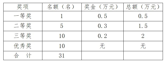 子賽道設一等獎1名、二等獎5名、三等獎10名,優秀獎10名,獲獎者將根據子賽道獎項設置頒發榮譽證書和獎金,子賽道一、二、三等獎獲獎者將直接進入主賽道評審。(所有獎金均為稅前金額)