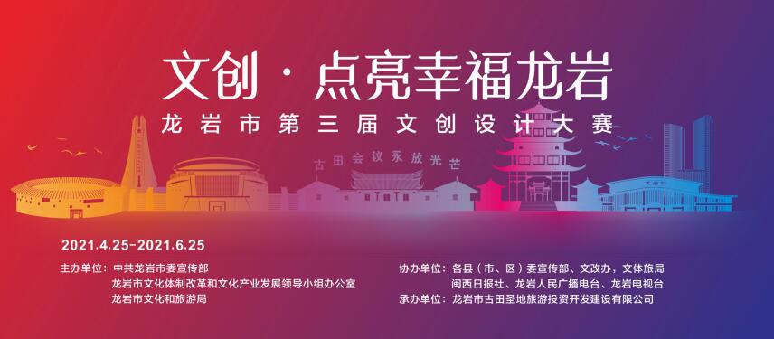 以大賽為紐帶,匯聚優秀文化創意設計人才,深入挖掘龍巖特色文化資源,弘揚優秀傳統文化,堅定文化自信;提高文化創意設計水平,推出一批理念新穎、內涵深刻、特色鮮明、競爭力強的文化創意作品;搭建文化創意產品成果轉化平臺,為文化創意產品尋求市場空間,推動龍巖文化創意產業快速發展,提升文化旅游融合高質量發展,向建黨100周年獻禮。