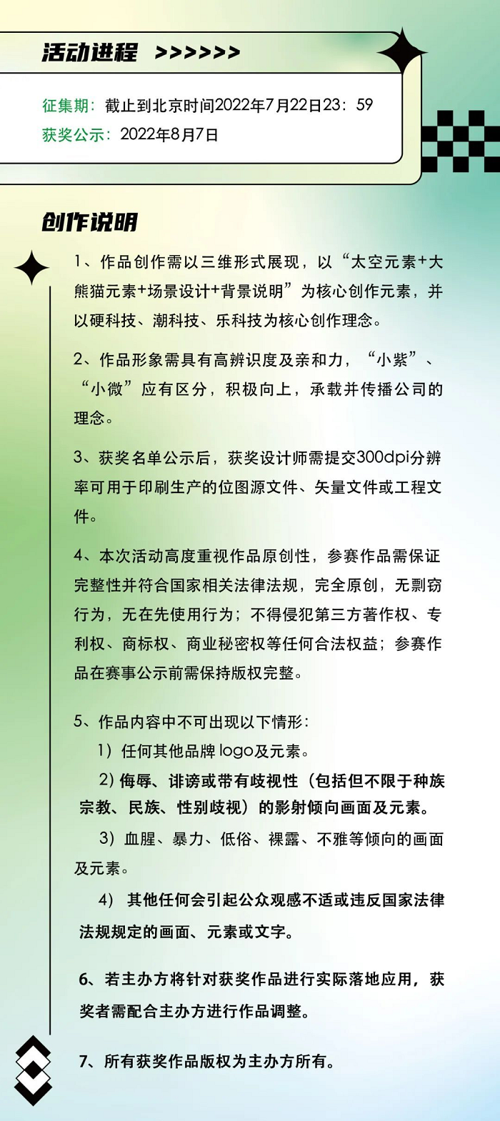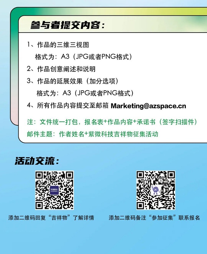 你好,太空!“小紫”“小微”形象征集活動正式開啟!隨著紫微科技熊貓太空站的落成,紫微宇宙的吉祥物寶寶們即將誕生,星河無窮,只待出發。現在,我們把孕育“小紫”“小微”的接力棒交到你的手中,請你盡情想象,未來,你想要他們帶你遨游到哪個星辰遠方?紫微科技三周年之際,邀你共見證!活動詳情請見下方海報。