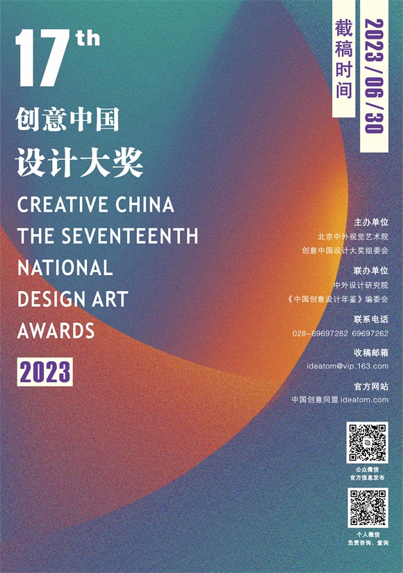 “創意中國”設計大獎自2007年啟動以來,迄今已走到第十七個年頭,每屆大獎都代表著當前設計研究與創作的年度水準,以其先鋒性、學術性、規模性在當代設計生態中產生著重要的現實影響。由北京中外視覺藝術院、“創意中國”設計大獎組委會主辦,中外設計研究院、《中國創意設計年鑒》編委會聯辦的第十七屆“創意中國”設計大獎于2023年3月在中國成都正式啟動征集。本屆大獎涵蓋平面、工業、環藝、服飾、綜合五大設計類別,全面溝通設計產業的各個層面,旨在進一步推廣新銳設計師的創意思考和設計表達,探索創意設計發展的新趨勢,促進我國創意產業不斷向縱深發展。